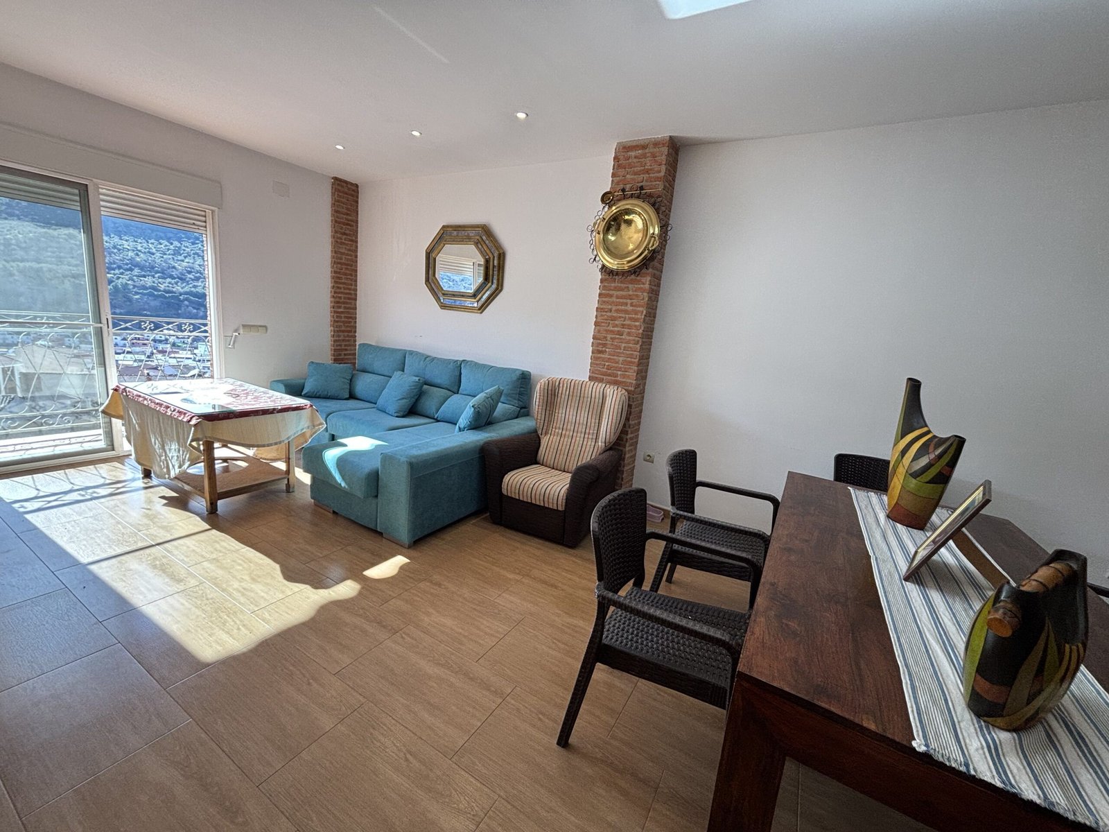 La vivienda principal ofrece un piso con increíbles acabados, distribuido en 3 dormitorios, 2 baños completos, uno de ellos en suite con jacuzzi, salón amplio y luminoso, cocina amueblada y patio interior. La vivienda es muy luminosa, con impresionantes vistas y una distribución pensada para el confort.